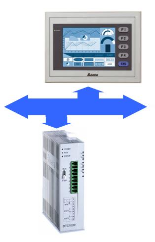 And finally here attached some DOP-B program example for control by communication some DTC (Delta Temperature Controller).