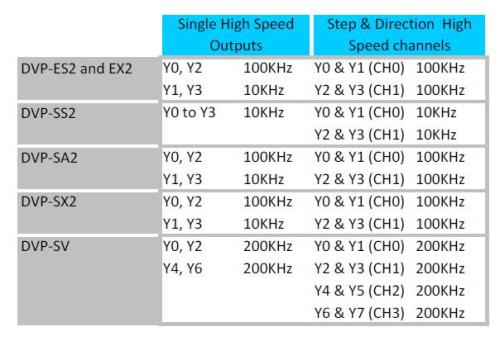 To control a Delta Servo drive trough step and direction (or a stepper motor, inverter…) those are the speed limitations of our new PLC’s