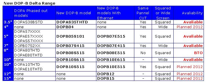 Due the new DOP-B07S415 / DOP-B07E415 HMI model, we decide to phase out the DOP-B07S200 / DOP-B07S201 / DOP-B07S211 models.