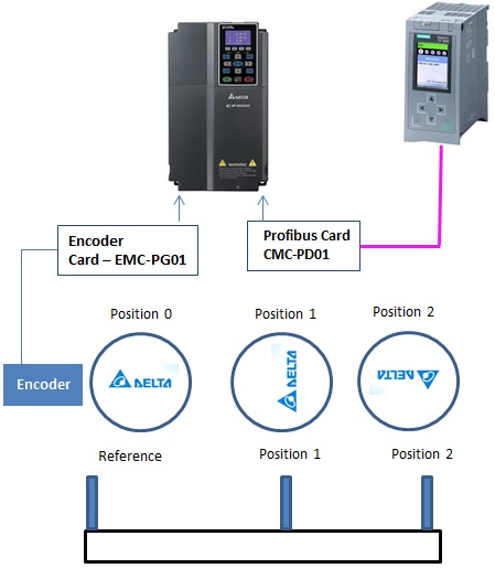 Positioning is one of the main applications of drive technologies and motion control and the necessity of positioning in industrial applications is quite wide and there are many applications where positioning could be applied. Some of these applications are a process machine valve, a conveyor, the thread of a ball-screw, a lifter, a drilling machine pattern or a driving cart through an assembly line. Precise positioning (tenths of millimeters for CNC for example) takes into account many other factors and are driven by Servo-controllers like the Delta ASD family servo-drives. However, the C2000 can be used for a variety of positioning functions with all robustness of a power drive for non-precise application where millimeters or less are not a problem. In this application we are going to learn how to set a drive system with C2000 for positioning, and how to transfer a position command using Profibus-DP from a S7-Siemens PLC with TIA PORTAL.