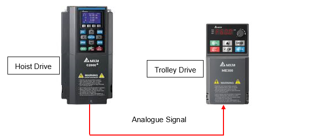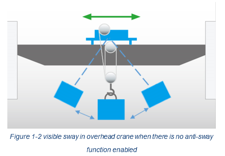 Anti-Sway function is basically a function of total length of rope. There are three methods for entering rope length information into our drives. The first method is to directly enter the maximum rope length to drive in meters. This is relatively the quickest approach and does not require an encoder. The other two methods are calculating the rope length through (1) encoder feedback from hoist drive or (2) measurement of gearbox ratio as well as gear size. These later two methods also make it possible to monitor actual rope length during the operation. Then the rope length data is transferred to trolley or long travel drive(s) via either D2D serial connection or analogue signal.