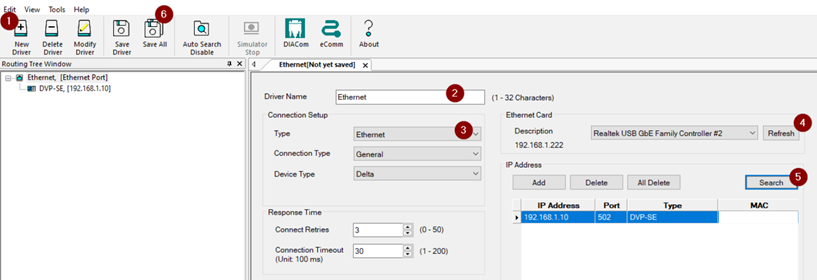 If you encounter the “Invalid driver or COMMGR not start up” warning message when opening ISPSoft\Tools\Communication Settings, please follow the steps below to resolve the issue: