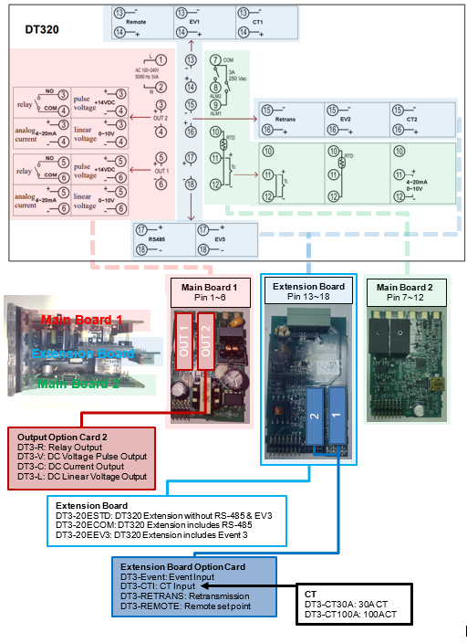 For instance, you can select DT320☐A (☐ represents the OUT1 option). This order code comes without the Extension Board, and you can purchase the accessories and assemble them yourself.