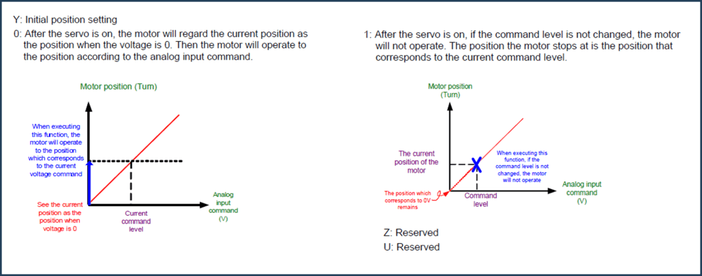 Then, the analog position command should be activated by using P1-64. Settings of P1-64 can be done like the following: