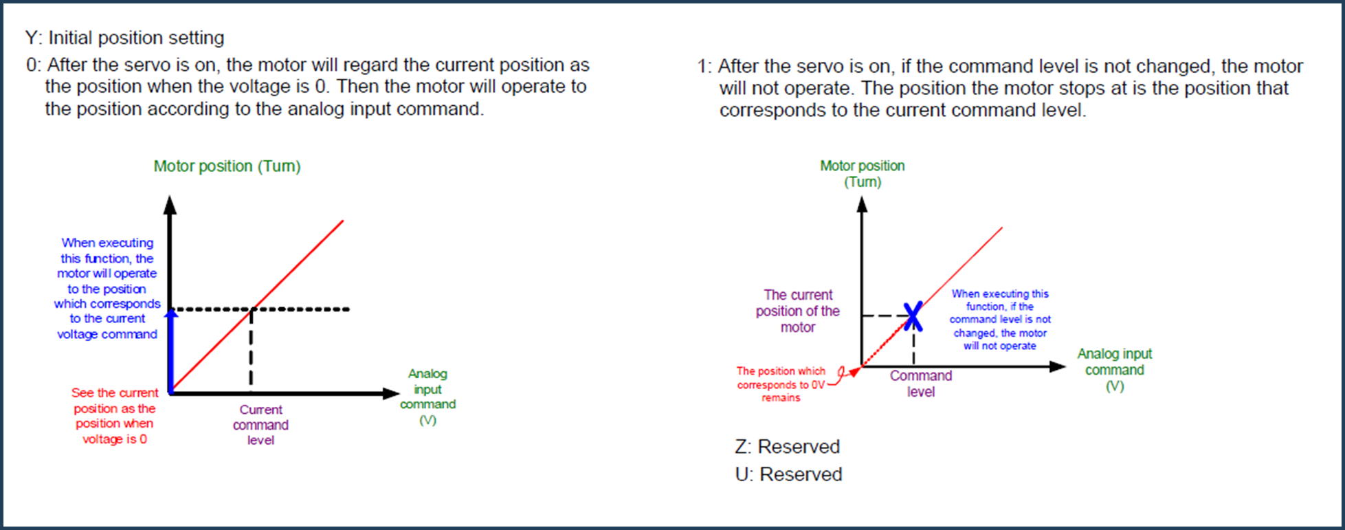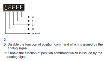 Then, the analog position command should be activated by using P1-64. Settings of P1-64 can be done like the following: