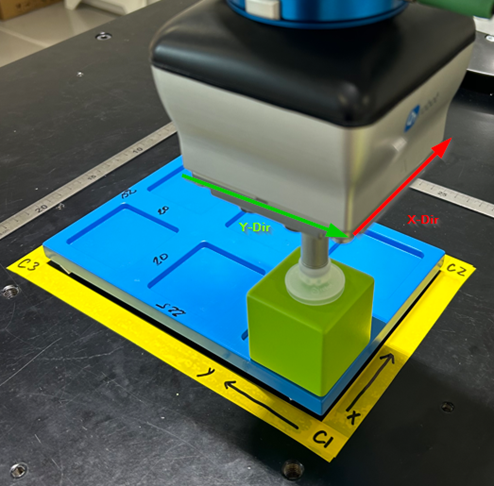 - When teaching the 3 points, please make sure your tool’s x-direction aligns with the pallet intended x-direction to avoid rotational offset