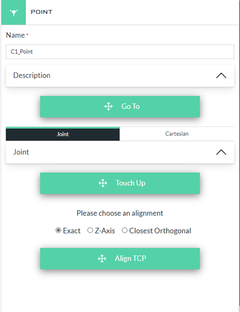 - Another option is after teaching C1, you can use the ‘Point Alignment’ feature and align your C2 and C3 to the exact same orientation as C1