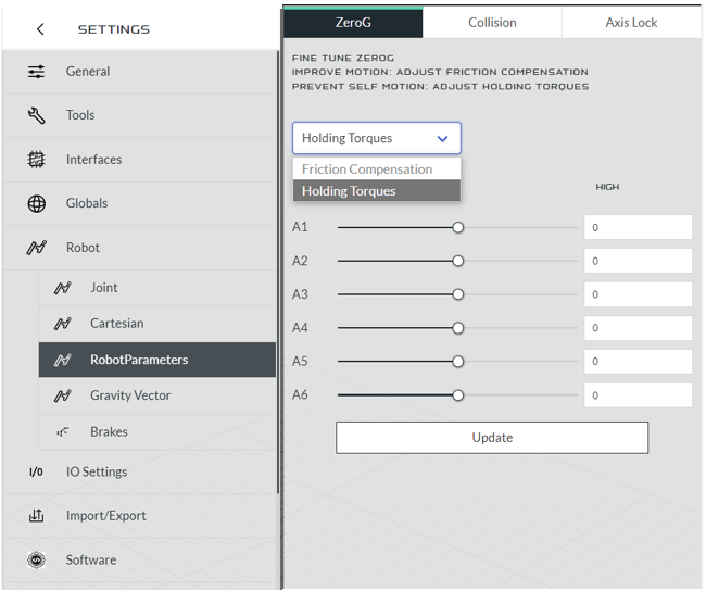 If circumstances do not allow you to perform DPI, you can temporarily adjust holding torque to arbitrarily give an offset to the robot to prevent movements during hand guiding.